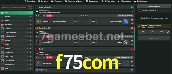 O f75com oferece uma grande seleção de opções de apostas em e-sports com probabilidades competitivas